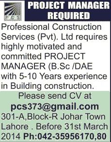 Copyright The Daily The Jang Newspaper Pakistan. Jobs Professional Construction Services (Pvt) Limited.