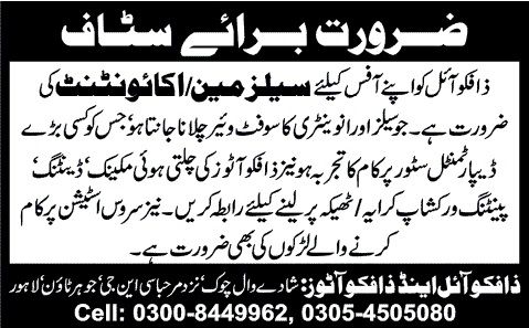 Salesman Accountant Jobs In Lahore 2014