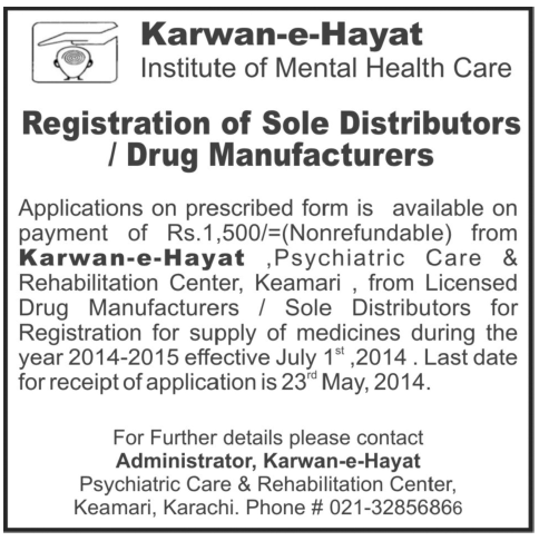 Karwan-e-Hayat Registration of Sole Distributors / Drug Manufacturers