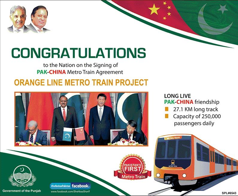 Pak China Orange Line Metro Train Project Agreement. Copyright The Daily The News Newspaper Pakistan.