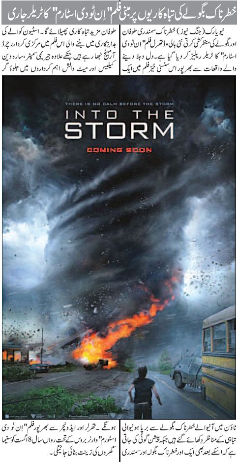 Into The Storm Trailer 2014 Film Release Date 08th August. Copyright The Daily The Jang Newspaper Pakistan.