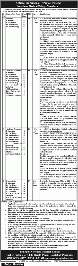 Jobs Nowshera Medical College Pakistan 2014. Copyright The Daily The Mashriq Newspaper Pakistan.
