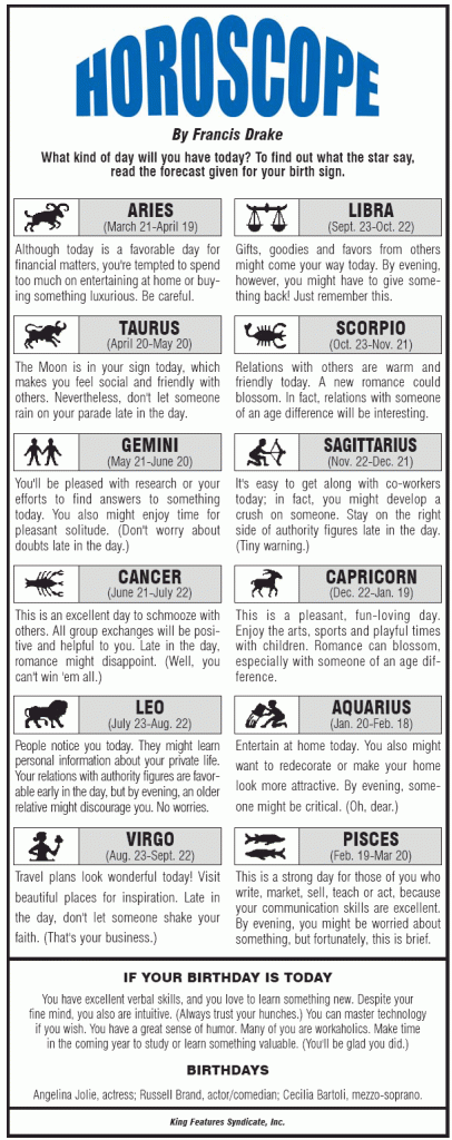 Horoscope and Birthdays 22nd July 2014. Copyright The Daily The News Newspaper Pakistan.