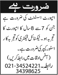 Import Assistant Jobs Textile Company Karachi. Copyright The Daily The Jang Newspaper Pakistan.