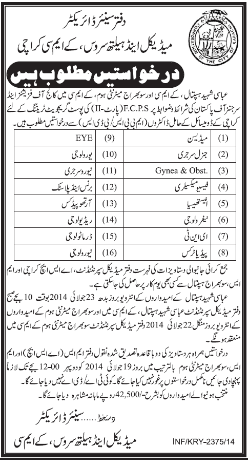 Jobs KMC Medical and Health Services Karachi Pakistan 2014. KMC Karachi Jobs. Copyright The Daily The Jang Newspaper Pakistan.