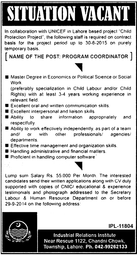 Program Coordinator Jobs Unicef Lahore 2014. Copyright The Daily The Jang Newspaper Pakistan.