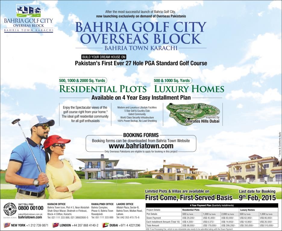 Bahria Golf City Overseas Block Bahria Town Karachi. Copyright The Daily The Tribune Newspaper Pakistan.