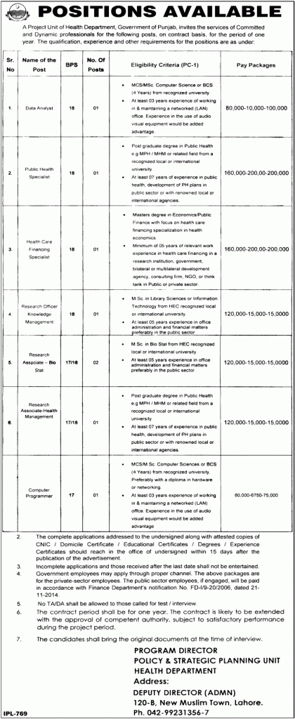 Jobs Health Department Government of Punjab January 2015