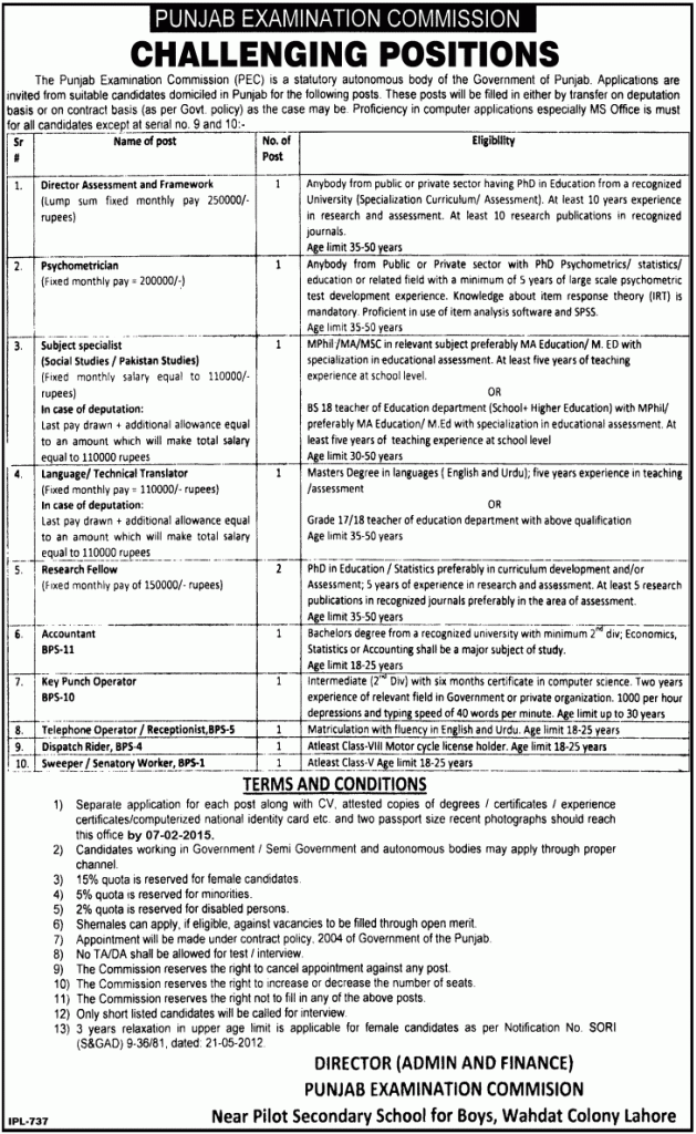 Jobs In Punjab Examination Commission (PEC) Govt. of Punjab. Copyright The Daily The Jang Newspaper Pakistan.