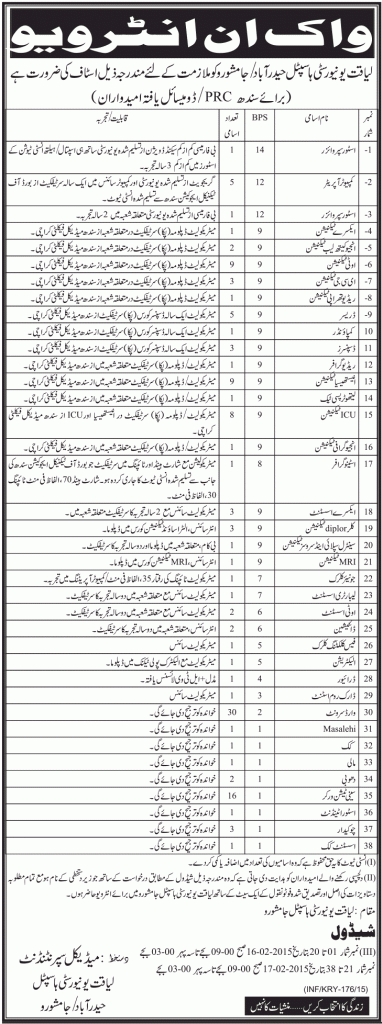 Jobs Liaquat University Hospital Hyderabad Jamshoro Jan. 2015