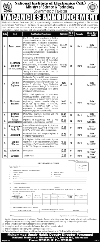 Jobs National Institute of Electronics Islamabad March 2015