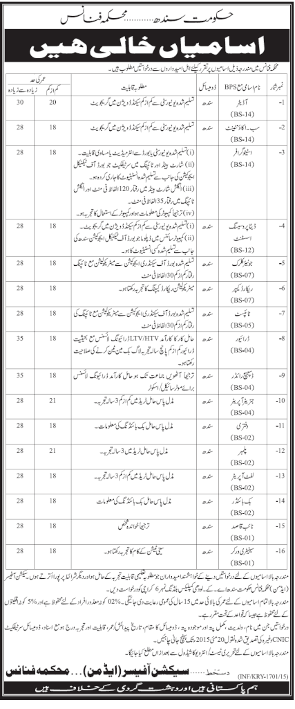 Jobs In Finance Department Government of Sindh May 2015. Copyright The Daily The Jang Newspaper Pakistan.