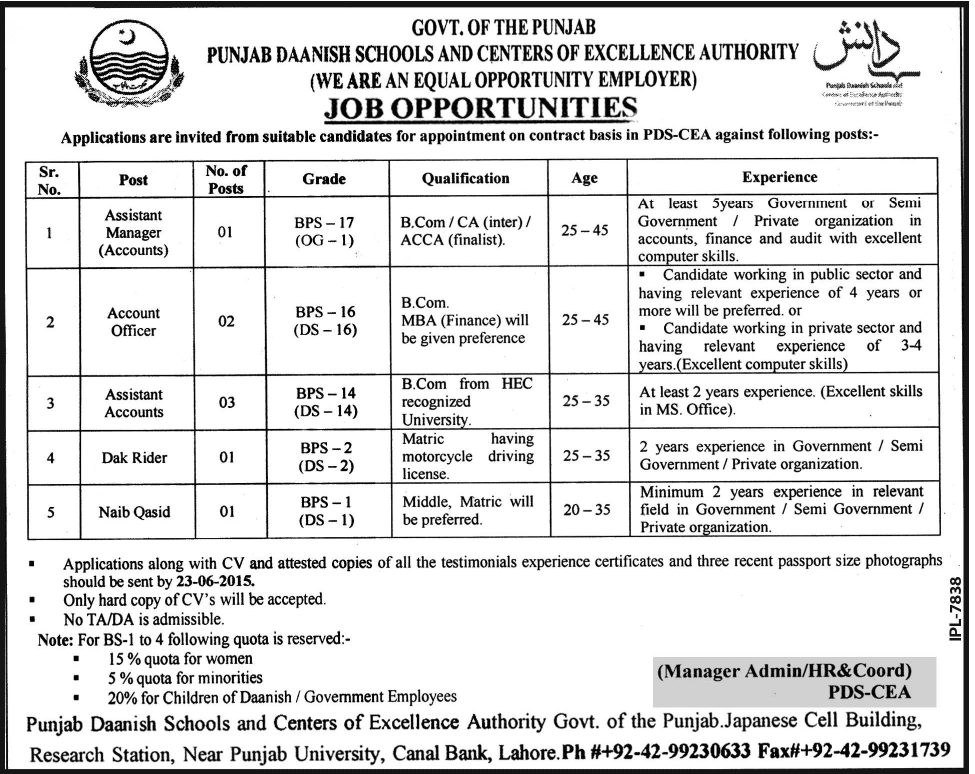 Job Punjab Daanish Schools & Centers of Excellence Authority 2015