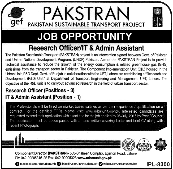 Research Officer/ IT & Admin Assistant Jobs UNDP PAKSTRAN. Copyright The Daily The Jang Newspaper Pakistan.
