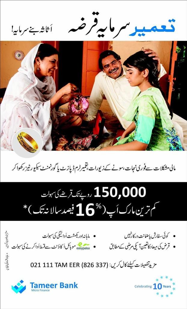 Tameer Bank 150,000 Loan and Lowest Markup 16%. Copyright The Daily The Express Newspaper Pakistan.