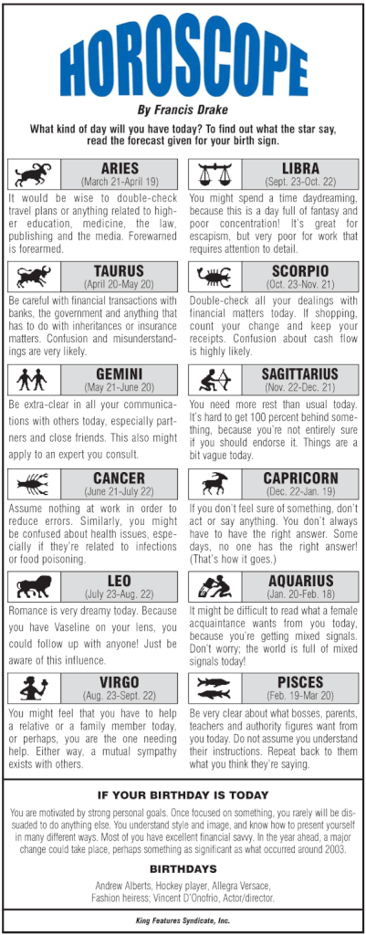 Horoscope and Birthdays 10th August 2015