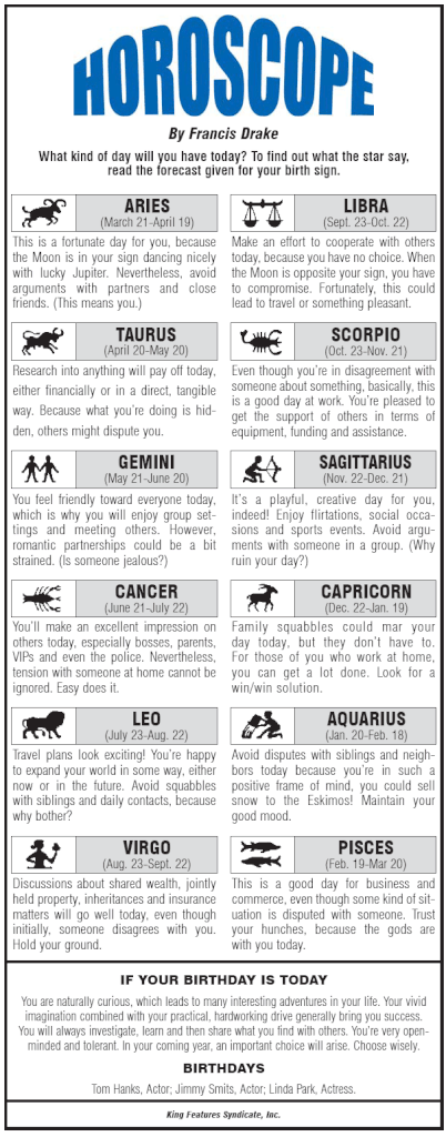 Horoscope and Birthdays 19th August 2015. Copyright The Daily The News Newspaper Pakistan.