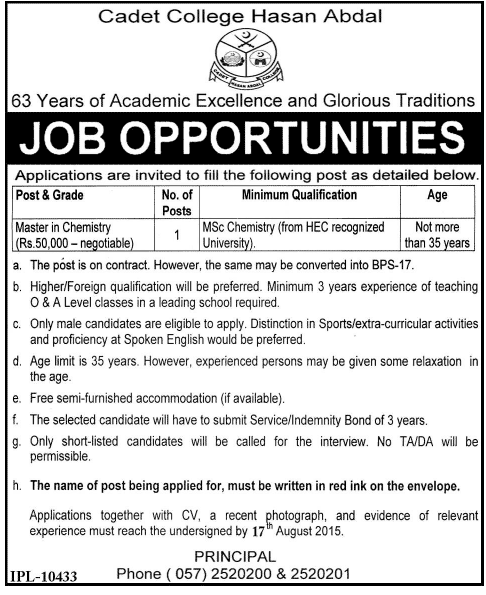 Jobs Cadet College Hasan Abdal August 2015 Copyright The Daily The Jang Newspaper Pakistan