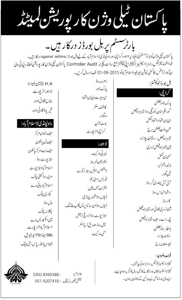 PTV Billboards Required On Barter System. Copyright The Daily The Jang Newspaper Pakistan.