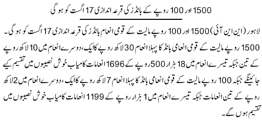 Rs. 1500 and 100 Prize Bonds Draw Will Held On 17th August 2015. Copyright The Daily The Express Newspaper Pakistan.
