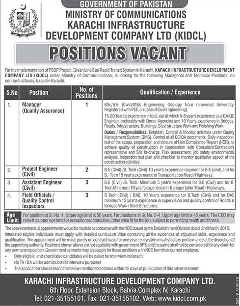 Jobs Karachi Infrastructure Development Company Ltd. (KIDCL). Copyright The Daily The News Newspaper Pakistan.